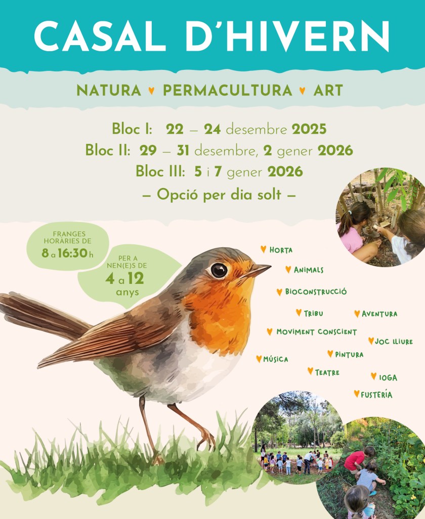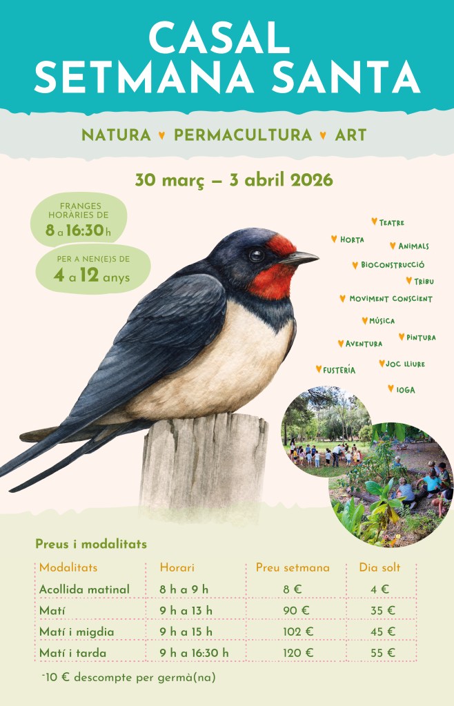Desde la asociación Las Acacias organizamos este casal con el objetivo principal de ofrecer un espacio donde consagrar las artes creativas con el cuidado de la tribu y el de la naturaleza. Nos gusta ponernos el prisma de la permacultura y la creación musical para disfrutar del pequeño oasis que supone este espacio en el corazón de Castelldefels. Con 2000 m2 de huerta y bosque comestible destinados a explorar los patrones de la naturaleza, queremos acompañar ala infancia en su conexión con su interior mediante la observación de la naturaleza, los procesos creativos, la escucha de sus propias necesidades y las de la tribu para crear en conjunto un espacio de aprendizaje que co-creamos entre todas. Lo hermoso reside, pues, en ver cómo la semilla germina, pasa por todos los estadios hasta ofrecer su fruto.