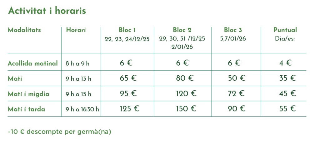 Una semana previa a al inicio de la semana del casal, las familias recibirán un correo con los últimos detalles informativos.